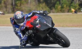 With victories in his MotoAmerica debut at Road Atlanta and a win in the first “extended” Supersport race at Barber Motorsports Park, the Spaniard has been nothing short of perfect on his Warhorse HSBK Racing Ducati Panigale V2. Thus, with the “extended” race paying double points in Alabama, the ultra-experienced Fores leads the title chase by 27 points, 100-73, over Tytlers Cycle Racing’s Stefano Mesa.