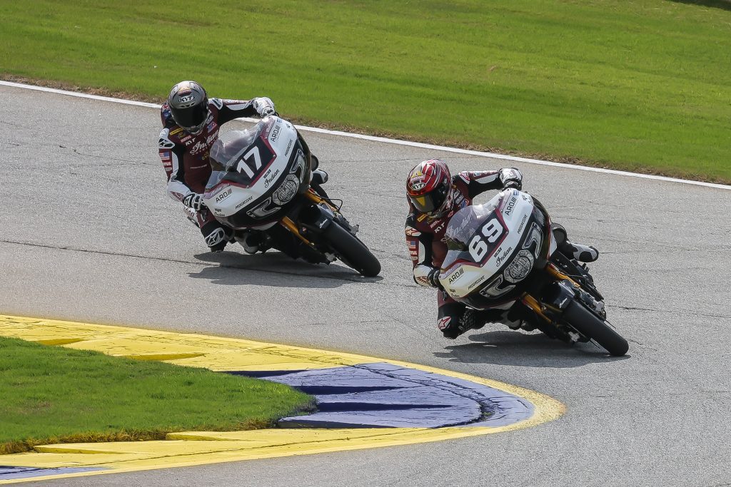 M4 ECSTAR Suzuki’s Tyler Scott, who is the current points leader, brought his GSX-R750 home in second place. The Pennsylvanian finished a mere .378 of a second behind Binder.