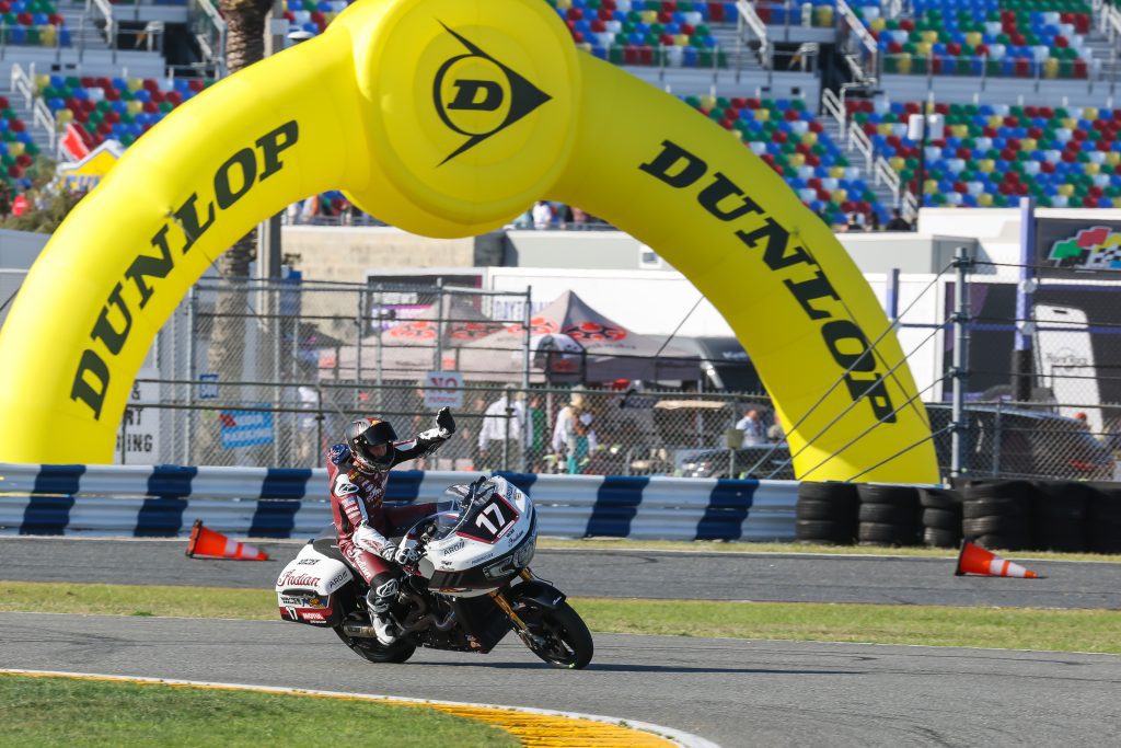 It’s a big honor to get a race win at Daytona. It’s definitely a special feeling crossing that stripe, in that stadium sort of atmosphere. Big, big props to Hayden, like, he was just riding incredible today and this weekend, and I feel heartbroken for him to go out like that, cause he had broken us, he had the race sewn up. But, it’s a credit to the Vance & Hines racing team, like, the Indian Challenger is just working better than I’ve ever seen, I can’t believe the amount of power it’s got. The way I was coming down, I got off that banking, it was almost scaring me sometimes. So yeah, I’m looking forward to heading into COTA for a test first and then over to Road Atlanta and get onto a sort of more traditional track and see if I can make a push at Hayden, speed wise.
