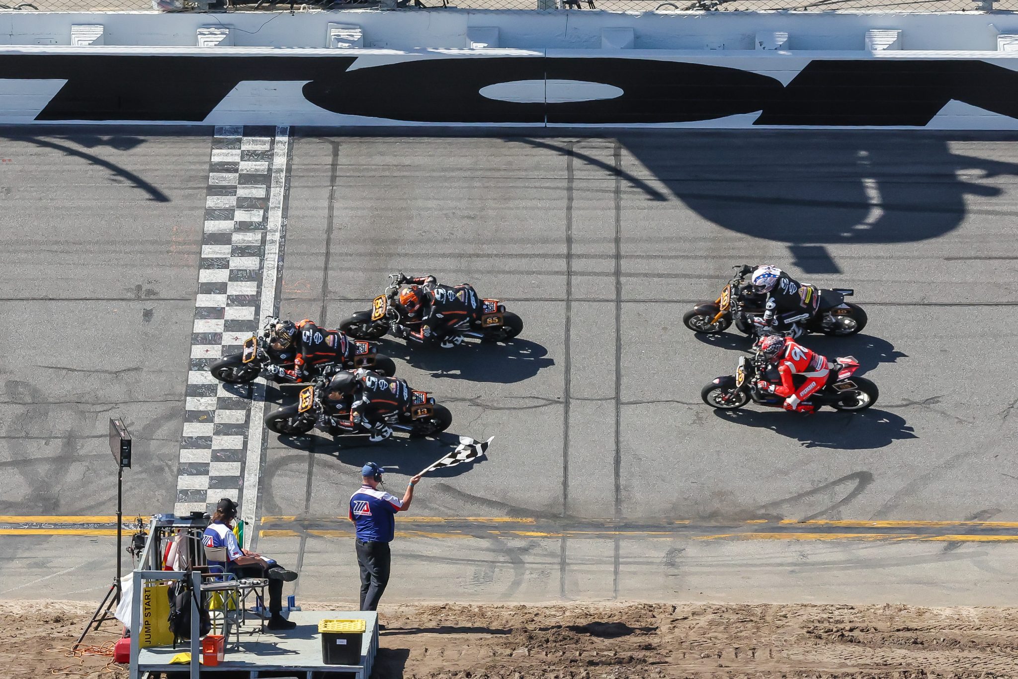 As the field came into the chicane on the final lap, the top 10 were still in lockstep, and the typical stall tactics began to see who would lead everyone around the high banks to the finish. As Saddlemen Race Development’s James Rispoli reluctantly entered the chicane, Rodio Racing’s Gus Rodio put his Ducati at the front and tried to make a run to the finish.