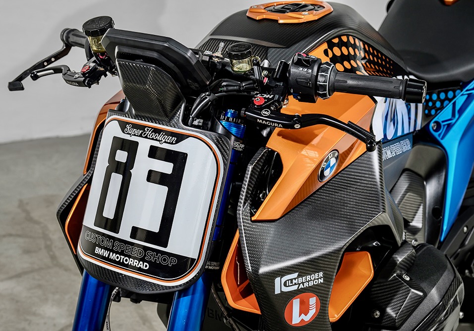 A stock BMW R 1300 R served as the foundation for the special, one-off motorcycle, and the project team translated it into a high-handlebar, unfaired “Superbike in Super Hooligan clothing.” In addition, a few design references to the BMW Superbikes from five decades ago made it into the build.